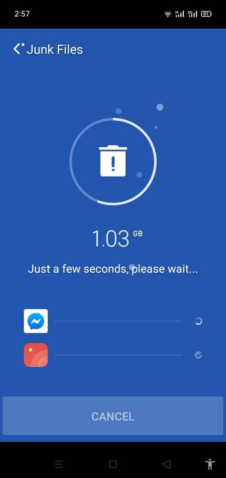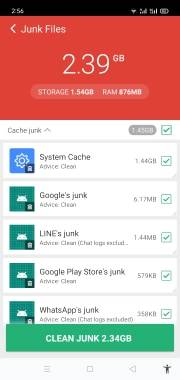 ونأتي هنا لأول ايقونة في برنامج كلين ماستر، وهي ايقونة ازالة الملفات غير المرغوب فيها. وهي تحمل اسم Junk Files. ففي كثير من الأحيان يتبقى بعض الملفات الفارغة التي تشغل حيز من ذاكرة الهاتف الذكي نتيجة تشغيل لعبة ثقيلة مثل لعبة ببجي أو تطبيق ثقيل مثل فيسبوك. وعند قفل هذه التطبيقات أو الألعاب تتبقى هذه املفات ولكنها لا تكون ظاهرة على الهاتف ولكنها تشغل حيزا على الذاكرة الداخلية للهاتف الذكي أو التابلت. وهنا يأتي دور clean master بالنقر على ايقونة ازالة الملفات غير المرغوب فيها، وهو يقوم بارسال اشعار لك يفيد بوجود مثل هذه الملفات ويقوم بازالتها في غضون ثواني معدودة تطول مدتها أو تقل على قدر كمية هذه الملفات.