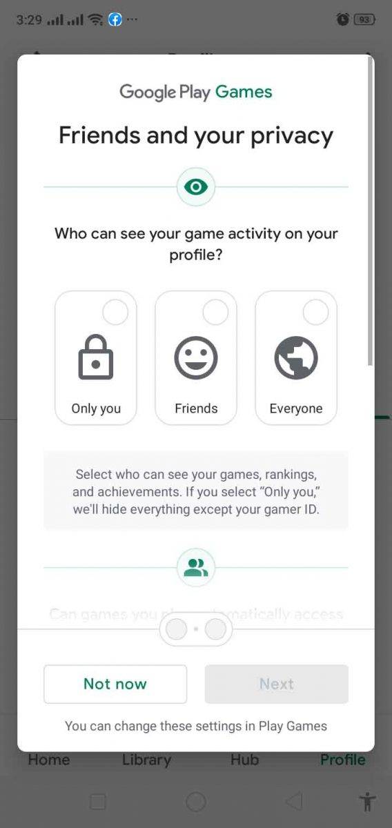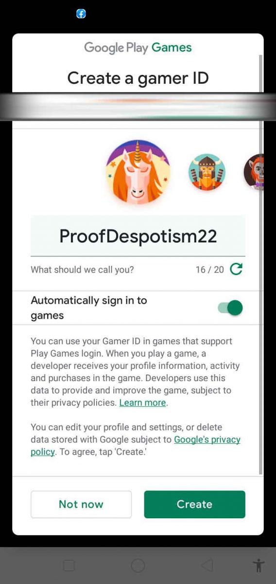 وبعد الاستقرار على الاسم المستعار. فسوف تختار خصائص الظهور التي تود ان تتوفر على حسابك. وهنا عزيزي القاريء سوف يكون أمامك ثلاثة خيارات. فإما أن تظهر لأصدقائك فقط. أو لا تظهر لأي شخص أو تظهر لكل الأشخاص. وهنا اتحدث عن نشاطاتك التي سيتم تسجيلها على حسابك. مثل الالعاب التي تحملها أو تجربها أو ما شابه ذلك. وبعد ذلك انقر على ايقونة Create لتكون قد أتممت خطوان انشاء الحساب على متجر جوجل بلاي للالعاب.