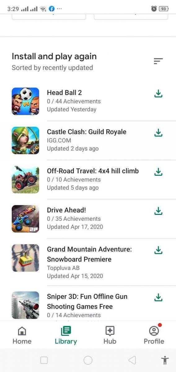 وهنا نتحدث عن أهم ما يميز برنامج google play games، وهي الصفحة الرئيسية التي تحتوى على قسمين في غاية الاهمية. وهذا بالطبع بخلاف القسم الرئيسي وهو الHome الذي يضم أهم الالعاب في الفترة الحالية والاكثر طلبا على جوجل. ويمكنك الدخول على قسم المكتبة لكي تتعرف على اهم الالعاب والتي تم تحديثها مؤخرا من قبل المطورين. كما يمكن الدخول على قسم الكوخ أو Hub. وهو القسم الخاص بالالعاب الاكثر تميزا. وهي الالعاب التي من الصعب أن ينافسها العاب أخرى أو أن يصل إلى جزء من شهرتها مثل لعبة صب واي وبدائلها المبينة في الصور اعلاه.