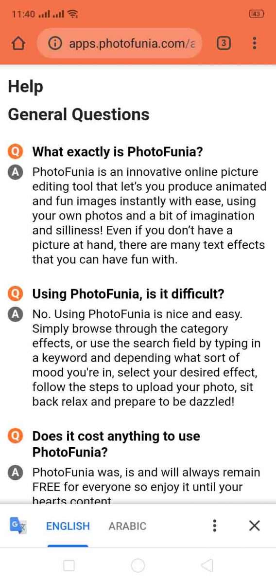 وهنا نصل إلى أخر جزء نتحدث عنه في برنامج فوتوفونيا. حيث يقدم لك لبرنامج رقم الاصدار الخاص به. كما يمكنك التواصل مع الدعم الفني إذا واجهتك مشكلة في تشغيل البرنامج، ومعلومات كثيرة عن البرنامج قد تهمك. وأيضا يقم لك البرنامج أهم الأسئلة حوله وإجاباتها باللغة الانجليزية.