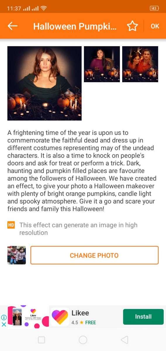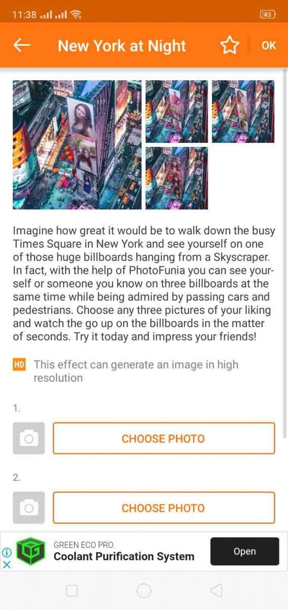 كما يمكنك عمل تأثير على أكثر من صورة، مثل تأثير بوستر الشوارع الذي يعلق على واجهة الأبراج مثلا، وهنا تختار الصورتين التي تود أن تدخلهم في هذا التأثير، أو تصورهم من خلال كاميرا الهاتف. بالاضافة إلى التأثيرات الاخرى المخصصة لصورة واحدة فقط. ولكن الذي يعيب البرنامج هنا هو انه أدرج تأثيرات الصورتين مع تأثيرات الصورة الوحدة دون التفريق بينهما، أو وضع كل منهما في قائمة منفصلة عن الأخرى، مما يضطرك إلى الدخول على كل تاثير لتعرف هل هو مناسب لصورة فقط أم صورتين.